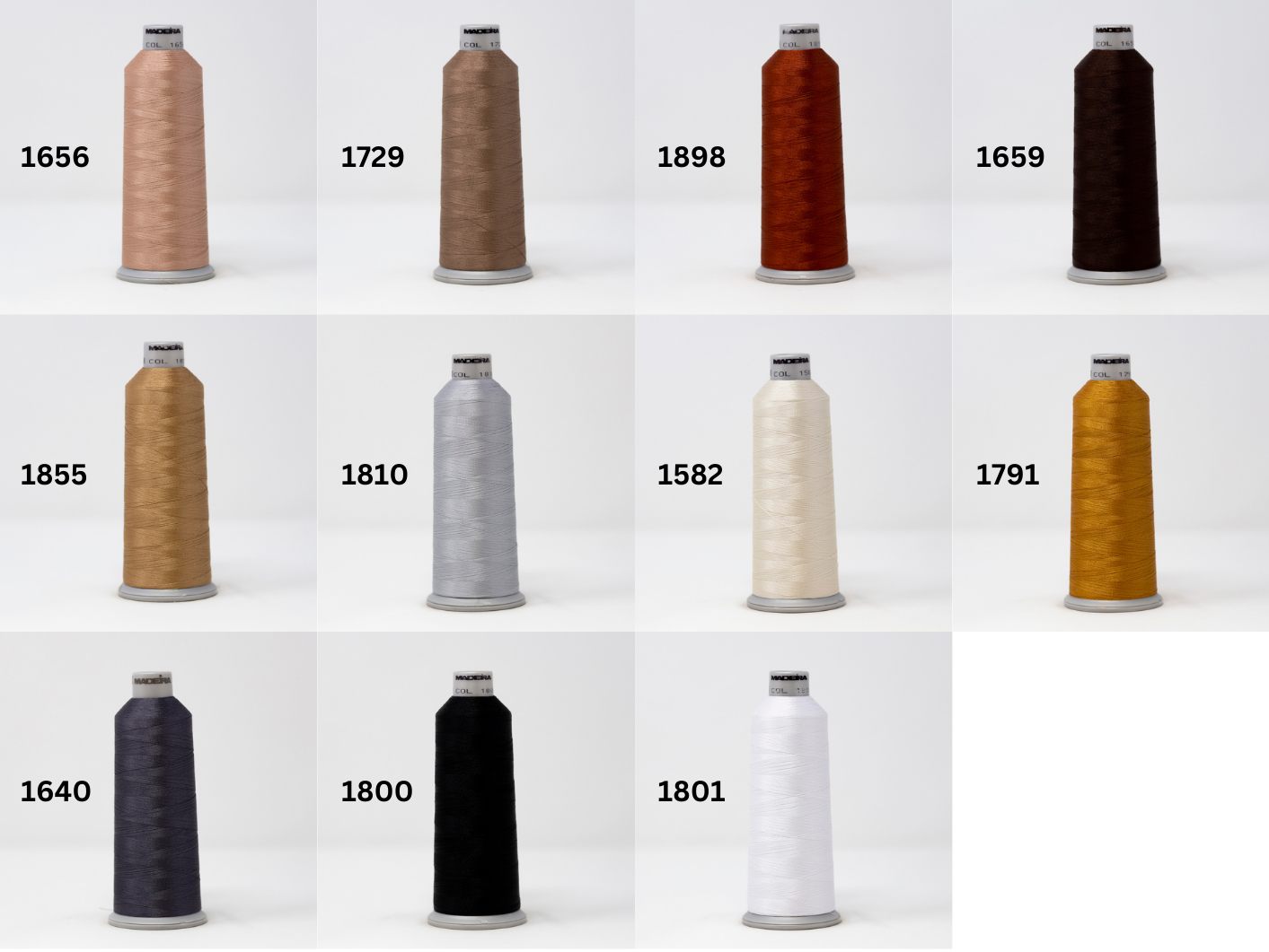 Please note that colours may vary slightly in appearance. The darker threads are a bit lighter in person.